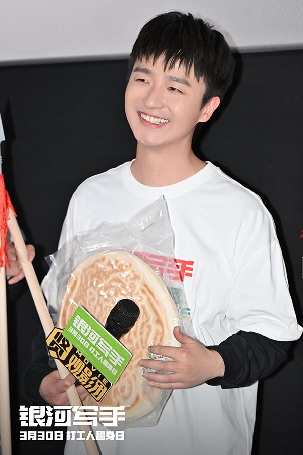 首映现场主创笑泪与共 真诚分享 在3月24日《银河写手》北京首映礼的映后现场,导演编剧李阔、单丹丹分享了选择回到常营举办首映礼的初衷。李阔表示:“回到常营,是因为我们一直在常营,从未离开过”。单丹丹将常营戏称为“常莱坞”,感叹从常营出发再回到常营,收获了在场许多人的帮助,希望这部来自常营的电影能走得更远。编剧高群则在现场表示“真诚是我们的武器”,希望大家可以多多鼓励年轻人的创作。几位演员也各自分享了拍摄过程中印象最深刻的戏,为观众讲述了创作中的温暖故事。是梦想,将一群年轻的创作者凑在一起。“三狗”组合更是在现场重现了“红缨枪”的经典场面,还和导演编剧李阔共同演唱《精神状态领先曲》,全场爆笑如雷。
