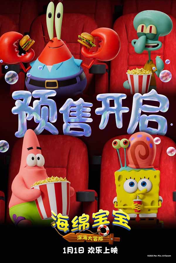 《海绵宝宝:深海大冒险》由美国派拉蒙影片公司出品,德里克·德莱蒙执导,汤姆·肯尼、比尔·法格巴克、马克·哈米尔、克兰西·布朗、埃丝·史佩斯等配音,全国预售正式开启,将于2026年1月1日内地上映,敬请期待!