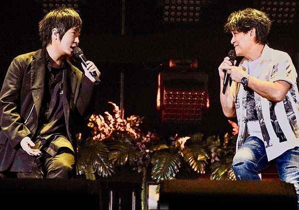 昨也才刚结束“北流”表演的萧秉治,一开始就先带来经典嗨歌《战神》、《射手》,再度迅速热现场气氛,他特制黑色水枪与歌迷打水仗消暑。去年首场个人大型演唱会“凡人MORTAL”创下多场完售佳绩的萧秉治,为弥补未到场的歌迷遗憾,不仅浓缩演唱会精华,也再度复刻重量级嘉宾趴,隆重邀请五月天怪兽义气相挺助阵,合作《放了自己》、《我还是爱着你》、《痛快世代》,GUITAR HERO与SUPER HERO合体,让歌迷又惊又喜,萧秉治开心笑说:“欢迎大家的偶像五月天怪兽,去年办巡回时,兽哥每场都力挺当我嘉宾,没想到今天还有这机会再次邀请到兽哥助阵。”怪兽也表示相当怀念与萧秉治合作的时光,“去年跟秉治合作很长一段时间,一眨眼过去,除了紧张也有点怀念,不如今天就来报复性怀念。”有趣的是,当萧秉治脱去外套,怪兽打土趣说道:“你这是报复性脱外套吗?”引来台下粉丝狂拱怪兽脱,他笑说:“我这是衬衫,不是外套喔!”用心准备表演的萧秉治,重新诠释多首神曲,包括乡村饶舌单曲《Old Town Road》、偶像周杰伦的《忍者》、蔡依林的《大艺术家》,极具用心。