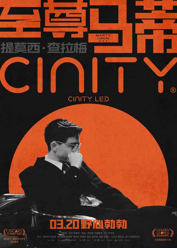 今日发布的IMAX海报以高饱和度的橙色乒乓球台为背景,马蒂仿佛用尽全身力气挥动球拍,血管因握拍而贲起,面部因呐喊而紧绷,张力十足。黑橙撞色的CINITY海报极具视觉冲击力,马蒂单手握拳撑住脸颊,似是正在咬紧牙关思索成为“赢”家的路径,与身后鲜艳的橙色乒乓球形成鲜明反差。当野心烧灼,不择手段的马蒂将何去何从?欲望驱使下,不管不顾以自我为中心将如何让他改写人生?3月20日,一起在大银幕揭晓!