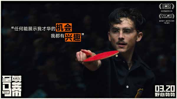 今日,由“甜茶”提莫西·查拉梅主演的电影《至尊马蒂》发布“赌命一搏”预告,将于3月20日上映。自诩“天选之子”的马蒂·毛瑟(提莫西·查拉梅 饰)为了实现自己的人生目标不惜用尽手段,无规则,不设限。野心勃勃的他不甘平庸,即将开启人生一场豪赌。影片斩获第98届奥斯卡9项提名,提莫西·查拉梅凭借马蒂一角成为最史上最年轻金球奖影帝(音/喜)类。电影《至尊马蒂》已成为A24影业出品电影累计票房第一,海外票房口碑双爆引发国内观众超强期待,更有提莫西·查拉梅首次来华宣传新片,无数粉丝影迷表示:“起猛了,甜茶来我家门口了!”