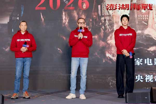 王学圻表示,希望影片不负电影人初心与观众厚望,更不负中华民族的“统一之愿”。侯雯元则期待作品能成为一部经得起时间考验的优秀中国电影。值得一提的是,横漂13年的演员沈凯也作为剧组代表之一登台发言,2024年,其在“金叶荣耀奖”获奖时的即兴感言而走进公众视野,入行12年参演80部作品,加起来不过几分钟。沈凯在现场难掩激动之情:“去年,我终于等到了《澎湖海战》这部海战巨制电影的邀约,我在这部戏里面演了一个真实的重要的历史人物。我一个小小的个体想着一些美好的愿望,去继续我的梦想,感谢剧组让我站上舞台和大家见面。”他衷心感谢《澎湖海战》剧组给予的机会,并祝愿中国电影繁荣昌盛。 电影《澎湖海战》讲述了公元1681年,台湾权臣冯锡范刘国轩弑杀监国郑克臧,挟立12岁郑克塽为新王,冯刘集团加剧分疆裂土以武谋独进程,并长期袭扰东南沿海城镇。康熙皇帝(易烊千玺 饰)多次派员招抚未果,于公元1683年,命福建水师提督施琅(王学圻 饰)领兵平台。施琅于澎湖大败台湾水师,最终以武止戈,实现了台湾和平统一。据悉,这部承载着中华民族统一之愿的电影将于2026年与观众见面。 |