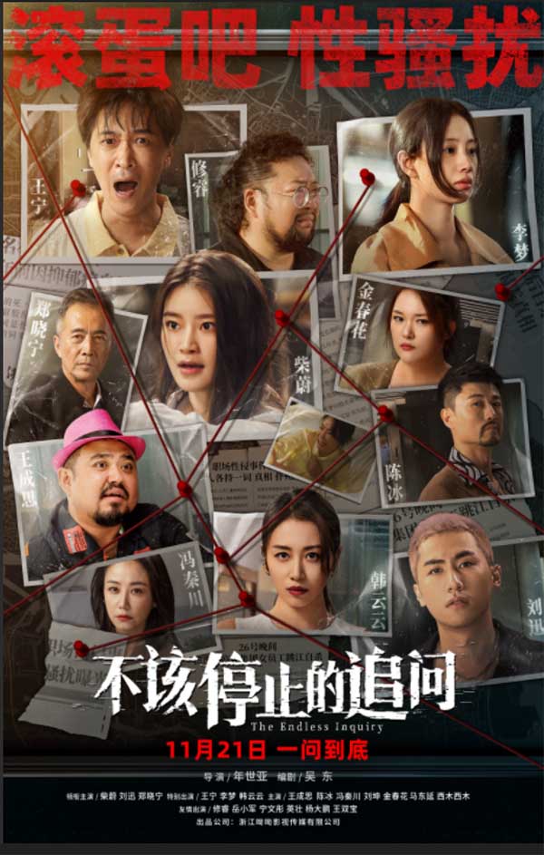 ![]() 由年世亚导演,吴东编剧,柴蔚、刘迅、郑晓宁领衔主演,王宁、李梦特别出演的反性骚扰电影《不该停止的追问》自宣布定档11月21日以来,就引发了诸多好评——“影片真敢拍”、“反性骚扰的电影现实意义重大”、“三观极正,值得期待”等不绝于耳,引发网友热议。近日,影片又发布了“全员入局”版海报, 11个角色悉数登场,充满疑云的性骚扰恶行背后,真相更加扑朔迷离,令人充满好奇。影片讲述了王菁菁(柴蔚饰)为找出姐姐王遥(李梦饰)撇下幼女离奇自杀的真相,勇敢揭开知名企业隐秘和幕后黑手的故事。在此过程中,菁菁发现了与姐姐命案关联最紧密的性骚扰恶行,在多方压力和拦阻下,她将如何绝地反击,用智慧和勇气迎来反杀?影片立足现实并传递了希望,其中精彩的追查真相凶过程和对性骚扰恶行的揭露,给人带来新奇的观影感受,进一步提升了观众的观看欲望。 ![]() 全员出动!性骚扰背后疑云密布 在新发布的“全员入局”版海报中,“滚蛋吧,性骚扰”的红色标语使人对影片的主旨一目了然,鲜明的口号给观众带来强烈的情绪宣泄,影片反性骚扰的坚定决心令人印象深刻。海报中,醒目的红线夺人眼球,以交错复杂的走向连接多个人物,不仅预示着不同寻常的案件内情,也暗含了极其丰富的信息细节。11位不同身份的人物纷纷登场,每个角色都和性骚扰这一恶行有着千丝万缕的联系,令人不禁好奇这一切背后的真相究竟如何。 ![]() 在海报中,复仇者女主角王菁菁(柴蔚饰)面带痛苦和愤怒,似乎是为寻背后真相展开绝地反击,并坚定地对一切进行大声控诉;受害者王遥(李梦饰)则表情惊恐,目光中带着害怕和不安,令人感到心疼;作为受害者的丈夫(王宁饰),面部扭曲表情略显狰狞,使人猜测其所起的作用;女主的闺蜜文馨(金春花饰),竟和财务总监(陈冰饰)也有关联,令人好奇背后的复杂关系;海报中的另两位女性角色——总裁助理杨可儿(韩云云饰)和女主管张岚(冯秦川)眼神别有深意,表情令人捉摸不透,而其他的男性角色如企业董事长(郑晓宁饰)、公司继承人(刘王迅饰)、公关总管律师(王成思饰)、养生馆前老板(修睿饰)等,都和女主及背后的真相有关联,令人猜测难停。错综复杂的追查凶故事,神秘多面的人物角色,以及影片大胆坚定的反性骚扰态度,都提升了观众的观影欲望,令人期待影片的上映! ![]() 滚蛋吧性骚扰!不妥协零容忍恶行 影片《不该停止的追问》相关上映信息一经发布,就引发了网友的诸多好评,纷纷表示充满期待——“给片方的担当和大胆点赞!” “对性骚扰,一定要不妥协零容忍!”“电影好样的,真有种真敢拍!”据悉,电影《不该停止的追问》以近10年国内发生的真实事件为创作素材,直面女性遭遇性骚扰的种种屈辱,在充满人文关怀的同时,也对更美好的未来充满希望。相信这部立足现实的影片上映后,一定能起到深远的警示教育作用! ![]() 在电影《不该停止的追问》中,实力派演员李梦通过精湛的演技,将王遥的无助、彷徨、压抑和妥协乃至最终放弃生命的历程淋漓尽致地呈现,使观众更直观地感受性骚扰带来的毁灭性的灾难;与此对照,柴蔚饰演的王菁菁,则对性骚扰恶行绝不妥协,用她勇敢的方式绝地反击,试图揪出幕后黑手,给观众带来了希望和慰藉。电影也以姐妹俩截然不同的选择,来表明反抗性骚扰恶行的决心和勇气。影片以非常鲜明且坚定的创作态度,有力鞭挞无限扩大化的性骚扰恶行,相信影片上映后,势必会影响和改变普通人对此的应对方式,从而进一步达到遏制甚至杜绝性骚扰这一丑恶社会现象的良好效果。 ![]() 电影《不该停止的追问》由浙江呦呦影视传媒有限公司出品,柴蔚、刘迅、郑晓宁领衔主演,王宁、李梦特别出演,王成思、陈冰、金春花、冯秦川、刘坤、韩云云、马东延、西木西木主演,修睿、岳小军、宁文彤、英壮、杨大鹏、王双宝友情出演,将于11月21日公映,敬请期待! ![]() |