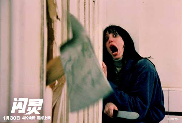 影片今日同步发布最新定档海报,画面中,斧头劈开的门洞后,是杰克经典的疯狂面孔,偏执与毁灭欲呼之欲出;杰克望向的右侧,他的妻子温蒂(谢莉·杜瓦尔 饰)面容上则是难以言喻的惊恐,与杰克形成了触目惊心的对比。一把斧头横亘在二人中间,在这场极限逃杀里完成影片中最让人毛骨悚然的一幕,没人知道斧子何时落下、会落向何处。杰克为何会将斧头对准爱人?是什么让远望酒店变成恐怖的源泉?深藏心底的恐惧被银幕无限放大,沉浸式刺激观感让人肾上腺素飙升!走进影院,亲自见证这场直击灵魂的战栗。