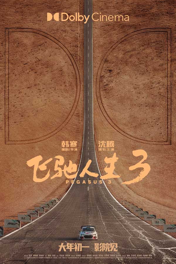 IMAX制式海报中,赛车在壮阔的沙地上急速飞驰,车尾卷起滚滚沙尘,拖出长长轨迹,将竞速感拉满之余,亦让人大开眼界。CINITY制式海报聚焦比赛冲线的激烈场面,在经历漫长征途之后,赛车的车况并不完美,但终点已然在望,引擎不熄,斗志不灭。中国巨幕制式海报呈现了神奇的雅丹地貌,天地辽阔壮美,张驰和孙宇强并肩而行,每一步都充满坚定与热血。杜比影院制式海报采用对称构图,一条笔直的赛道在戈壁滩上延伸,张驰驾驶的赛车迎面而来,让人仿佛听到引擎的轰鸣与风的呼啸。SCREENX制式海报中,连绵的深红山脉高耸,极具视觉冲击力,赛车无惧复杂地形,气势磅礴地穿梭其间,临场感十足。HDR LED制式海报中,赛车在原始的砂石路面上疾驰,车尾灯光犹如喷薄而出的尾焰,尽显一往无前的气势。DTS:X制式海报和4DX制式海报则选用了赛车雨中漂移的画面,聚光灯下这辆车就是这条赛道上的主角,车尾摆动溅起雨水,仿佛一场酣畅淋漓的热舞。更大的银幕、更鲜活的色彩、更逼真的声音,多种特效制式将在马年新春带给观众一场身临其境的大银幕飞驰体验!