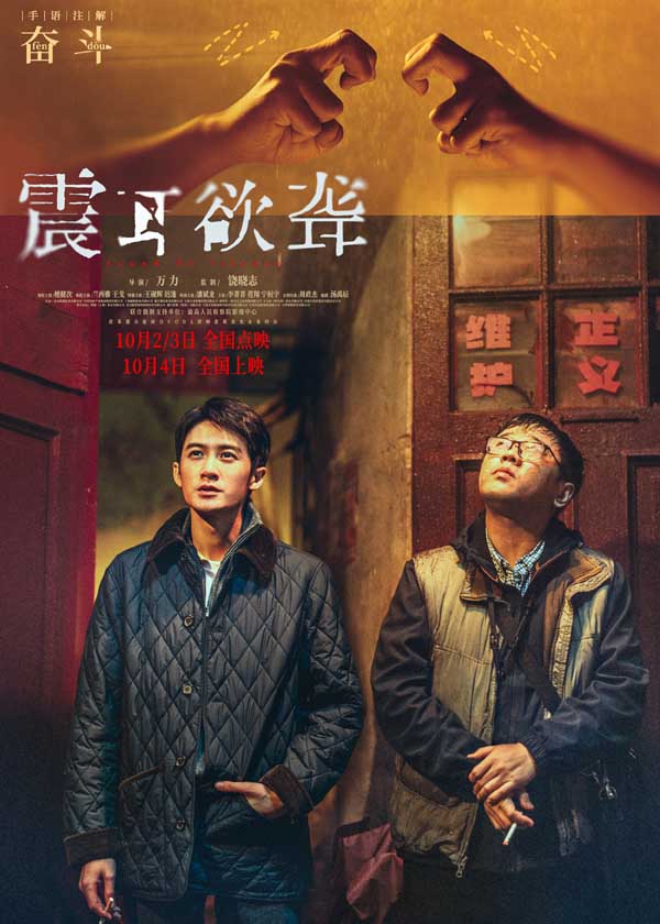 电影《震耳欲聋》由北京联瑞影业有限公司、中国电影产业集团股份有限公司、上海猫眼影业有限公司、浙江横店影业有限公司、天津木木影视传媒有限公司、深圳市一怡以艺文化传媒有限公司、大方向(哈尔滨)影业有限公司、内蒙古电影集团有限责任公司出品,联瑞(上海)影业有限公司、北京微梦创科网络技术有限公司、浙江影视(集团)有限公司、上海五星极加体育娱乐发展有限公司、江苏省电影集团有限公司、天津联瑞影业有限公司联合出品,万力执导,饶晓志监制,檀健次领衔主演,兰西雅、王戈领衔主演,王砚辉、迟蓬特邀主演,潘斌龙特别主演,李菁菁、范翔、宁桓宇主演,周政杰友情出演,汤禹辰编剧,将于10月2日/3日进行全国点映,10月4日全国上映,敬请期待!